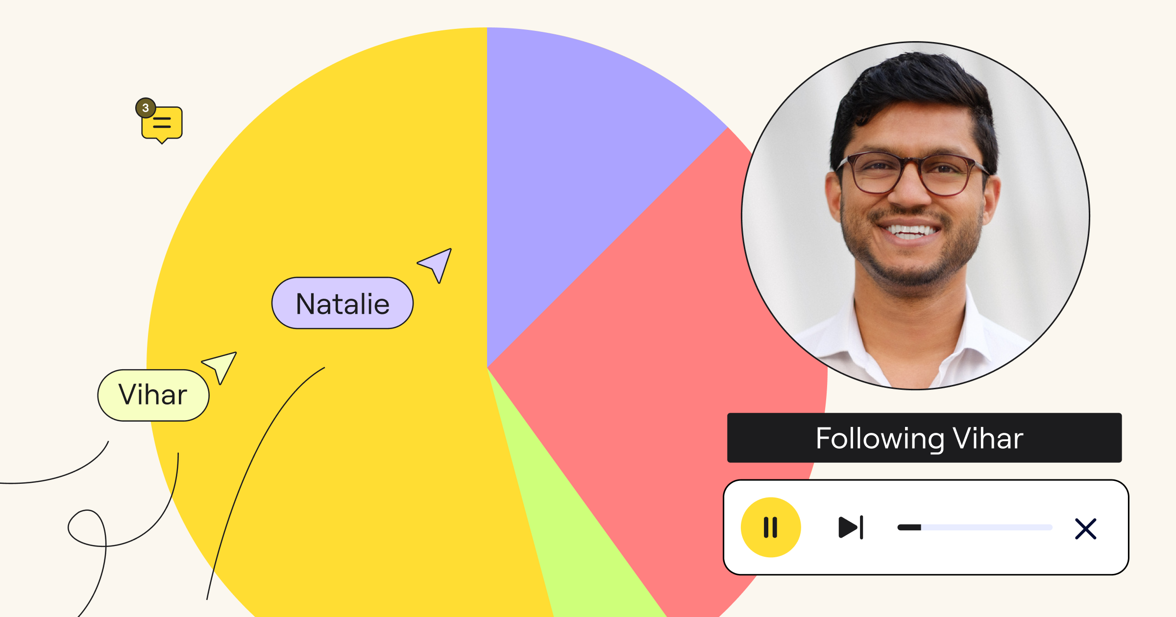 The better option: Miro’s Talktrack lets users pause the recording at any stage to interact with board content. So, as more users review the same live board, input on any particular element accumulates over time. In other words, feedback can be captured once and others won’t feel obligated to spend time replicating it, which also makes life easier for whoever needs to read and incorporate this feedback later.