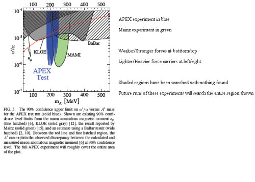 Both of these experiments are still in the very early days; their results come from short, preliminary runs of data-taking. They both plan to have a much longer run, which should allow them much greater sensitivity to weaker forces and to force carriers of a wider range of masses. In particular, the unshaded region in the figure, which hasn’t been searched yet, should be entirely covered soon.